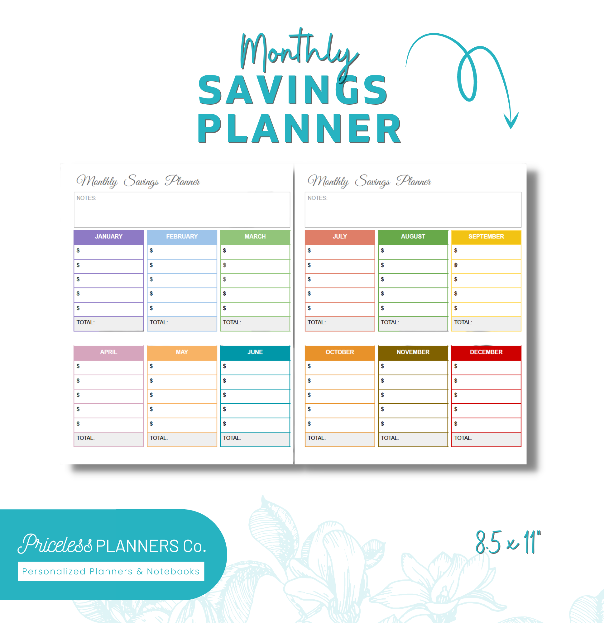 The GMP Printables Budget Notebook Layout 2 is designed to help women manage their financial priorities. Boasting a beautiful cover, this Budget Notebook is printed with lovely colorful splashes. The Budget Notebook covers 12 months of financial budgeting and planning and features gorgeous silver metal coil binding, notes pages, and more!
